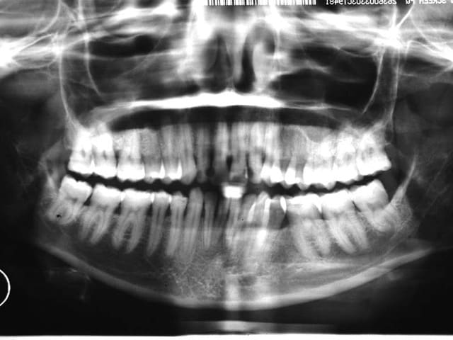 la question que je me pose est: est-ce que je dois pousser ma technique à ses limites pour arriver aux 6 mm., pour mettre un implant, ou est-il préférable de faire un bridge
