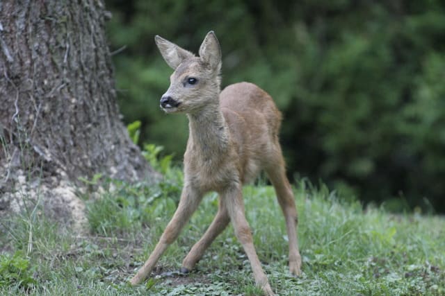 Trop craquant le faon les pattes écartées en recherche d'équilibre !