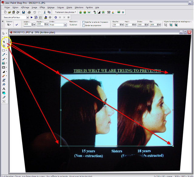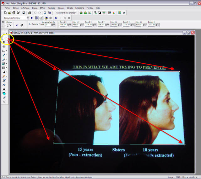 Elle est transférée dans un logiciel de correction où est appliquée la "correction de perspective" (image P2, avec Paint Shop).