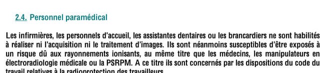 L'Ordre avant ses derives actuelles (derniére Lettre DE l'ORDre calamiteuse concernant ,la radioprotection et la radiologie)à fait un DOSSIER que l'on peux consulter sur le site de l'Ordre.Il y a aussi le Guide des procédures en matiére de Radiologie (diffusé par l'ASN l'ORDRE et l'ADF