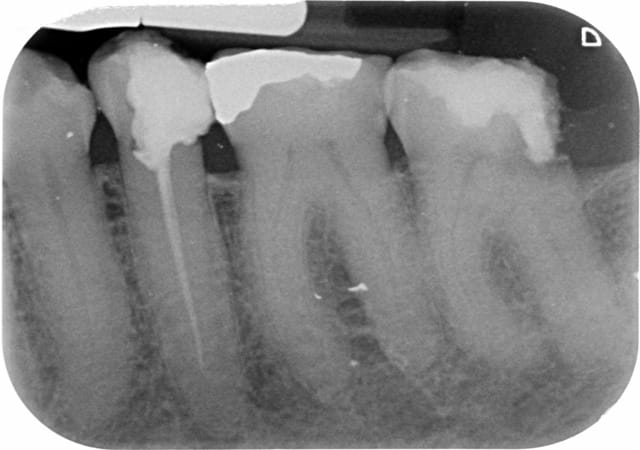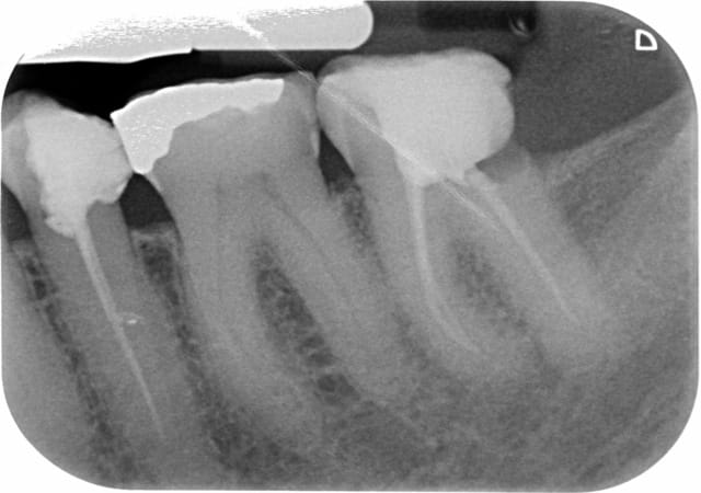 Une patiente de 71 ans, suivi depuis longtemps au cabinet par mon prédécesseur, se présente au cabinet pour une visite de contrôle. Je découvre en plus de 26 à extraire, une carie profonde en D de 37 ainsi qu'un traitement insuffisant sur 35. 35 et 37 devant être couronnées. Après ce 1er RDV, 2 rendez-vous sont pris pour réaliser d'abord le retraitement sur 35 puis l'endo sur 37.