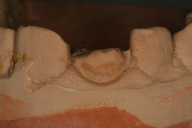Pour ceux qui émettaient l'hypothèse du manque de place pour le prothésiste, je n'ai pas de photo en occlusion, mais vous pourrez constater qu'au moins en périphérique il avait largement la place. Et je vous demande de bien vouloir me croire pour la place en occlusal.