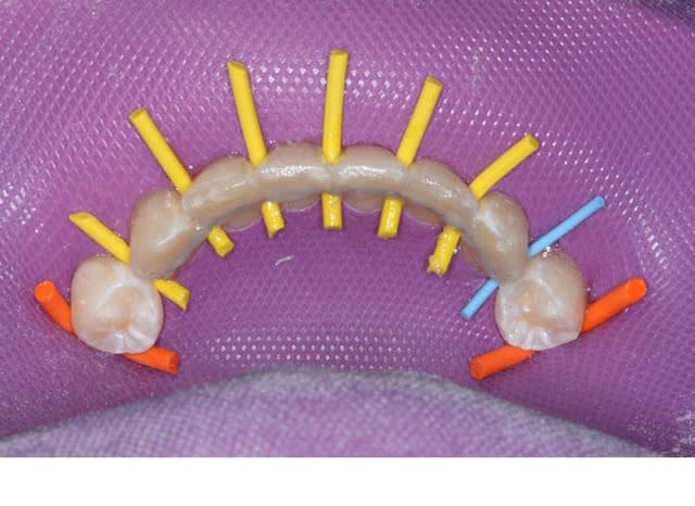 Je ne vois pas pourquoi elle ne retiendrait pas la plaque, puisque (à supposer que l'or lui-même ne retienne pas la plaque, ce qui est faux)le fil est complètement noyé dans du composite. Et que le composite n'est pas un modèle de produit qui repousse les bactéries.