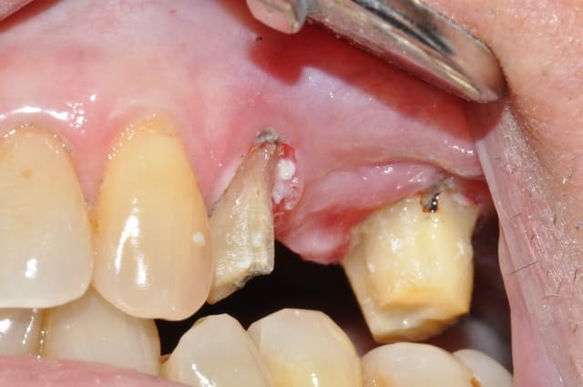 Voilà le risque de faire un bridge vs implant sur deux dents qui au départ n'étaient peut-être pas si mal...