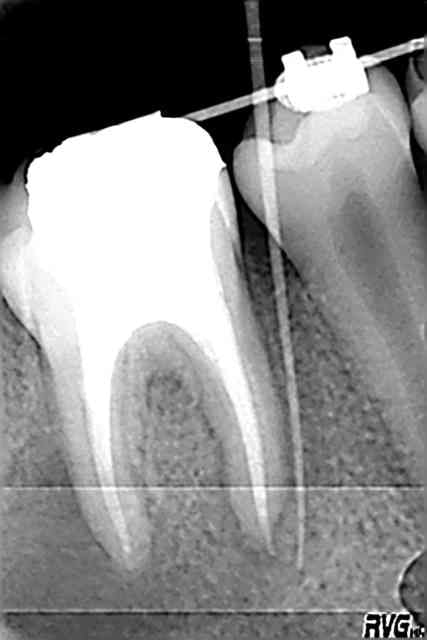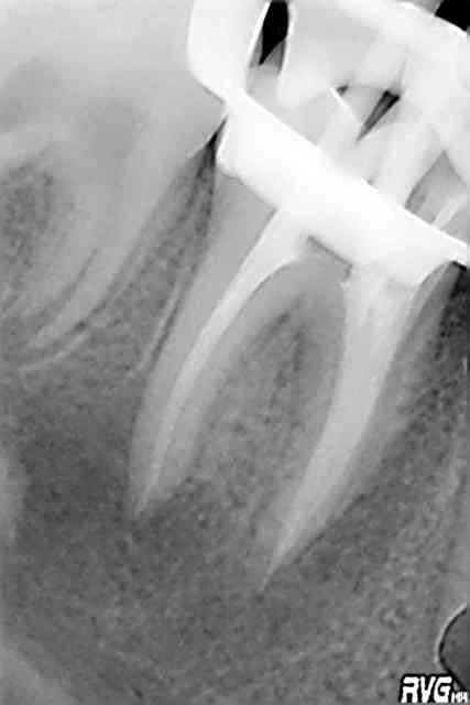 La gutta est passée dans la fistule. Je n'ai pas noté de poche mésiale.