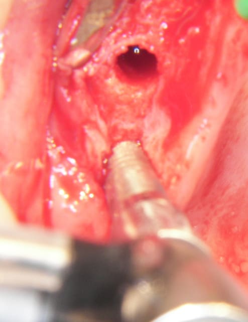 en vissant le dernier implant (3,4 x100), j'ai été un poil trop loin et l'implant et le porte implant son passée dans le sinus, (sans perforer la membrane)