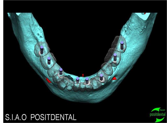 Ceci dit, je place souvent 5 entres les foramens, en applanissement la crête. Mais souvent, il n'y a pas des place en postérieur, ici semble que oui, avec un total de 8 implants.