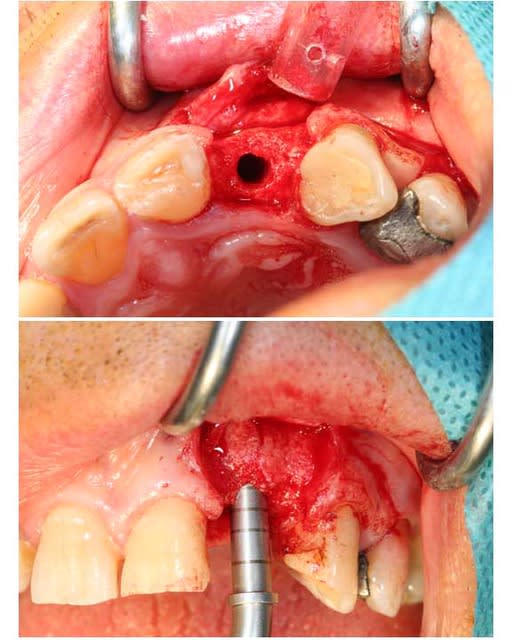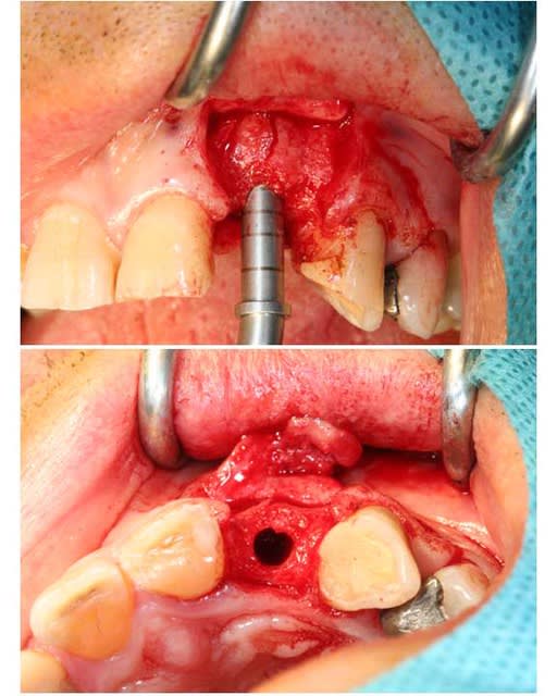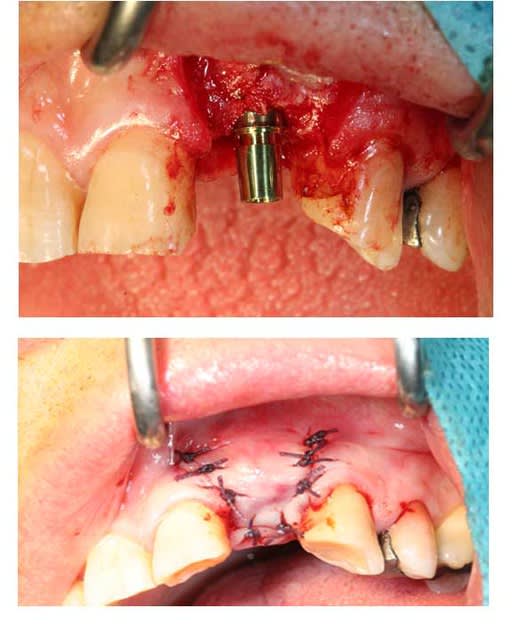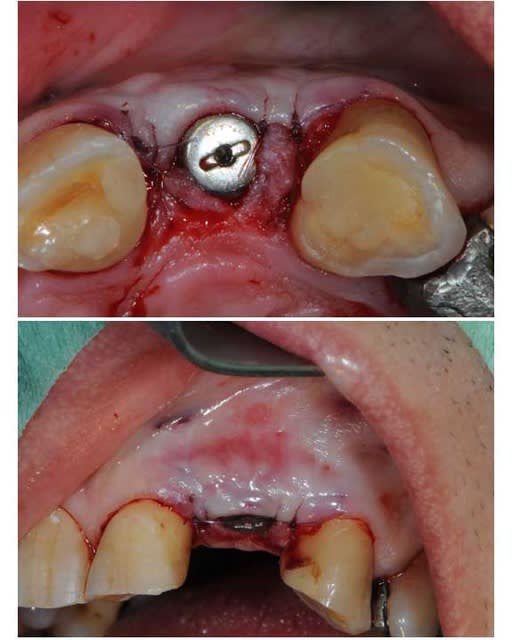 puis mis a jour de l'implant avec au départ, une d'ésépithélialisation de la gencive pour faire un lambeau d'épaisseur partiel puis méthode du rouleau afin de gagner en épaisseur