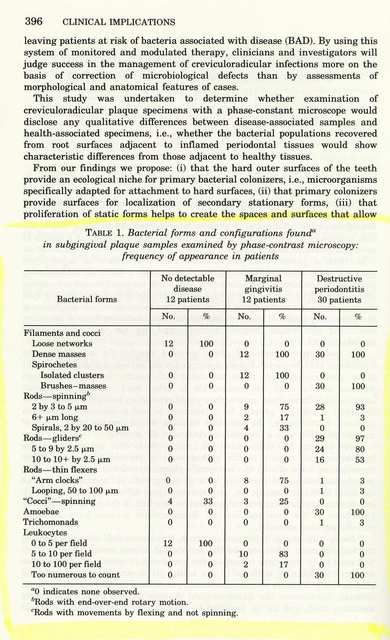 Le fait est que personne n'ose, alors que nous avons plus de 1000 dentistes qui utilisent la méthode de la gestion du biofilm avec plus de succès que jamais escompté. Généralement : fermeture des poches a plus de 90%, (étude de M Bonner publiée dans ID 2003), points de saignements a zéro, retour à flore normale, absence de récidive à long terme.
