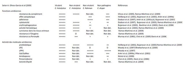 Sur ce je vous envoie le tableau des caractères pathogènes de l'amibe, avec l'espoir que vous pourrez un jour y classer Entamoeba gingivalis dans la prochaine colonne(l'info y est absente... est-ce normal?).