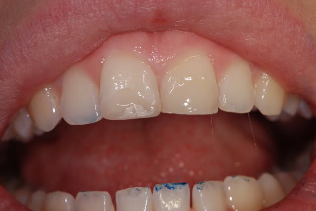 Exemple ici sur la 21 de cette jeune patiente bruxomane notoire, qui m'a pété un cable dans le cabinet devant le résultat "je ne vais pas sortir comme ça dans la rue", alors qu'elle avait bien supporté d'avoir une dent avec plusieurs mm en moins pendant plusieurs jours...
