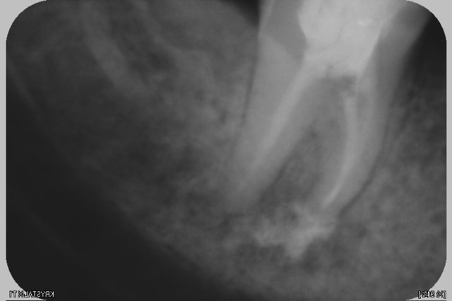 la dent été traitée par un autre confrere ça fait plus que 10 ans, il y a eu une tentative de retraitement par un autre confrere il ya 4 mois