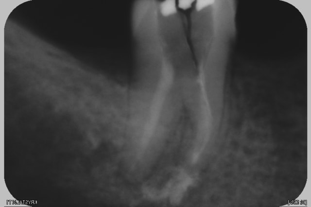 j'ai fait une chtite amputation de la-dite racine et une CCM toute belle sur les deux belles racines restante...
