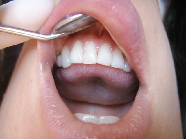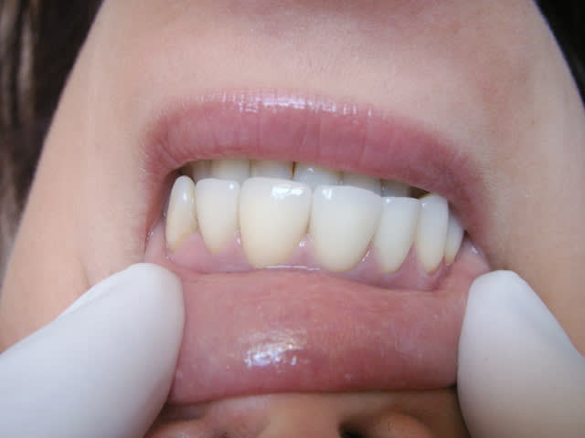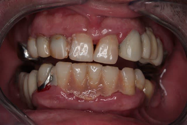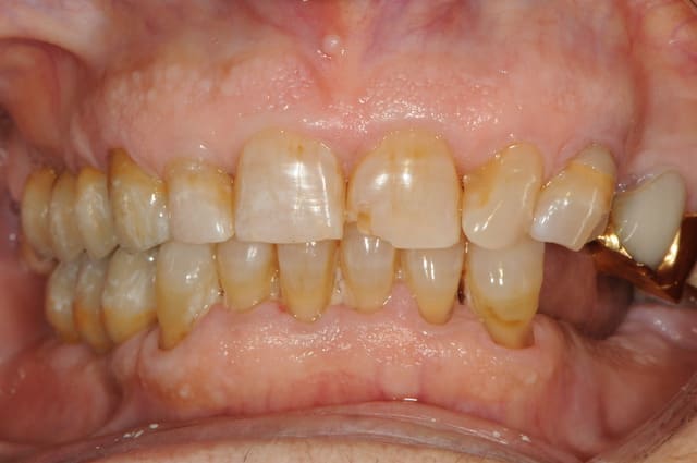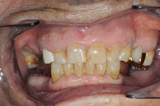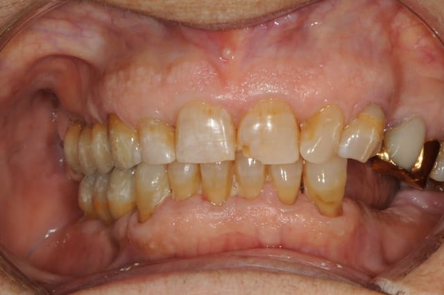 pour faciliter le chmilblick : sur une arcade il y a une seule prothèse visible et sur l'autre il n'y a qu'une seule dent naturelle visible
