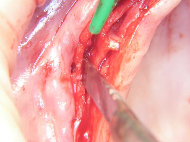 exemple photos crête de moins de 1 mm paroie vestibulaire et palatine, travaillées à l'osteotome de tatum (en l'inversant )implant lisse, retiré+vitalos+axiom dans la foulée, et donc pas de place pour la photo car "ça speed".