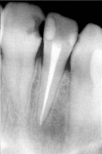 > vue une avec des liserets noirs autour de tous les tenons radiculaires et il n'y