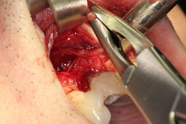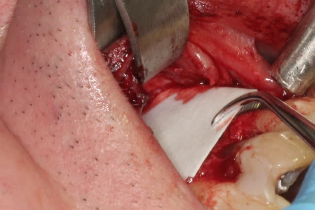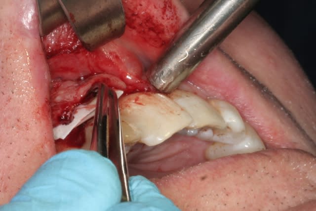 3) Faire une chirurgie SANS faire une reprise de traitement adéquate et donc intervenir sur une grosse lésion qui aurait pu diminuer de volume toute seule ( à oui toi tu t'en fou du poses des membranes....).