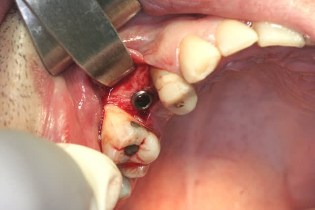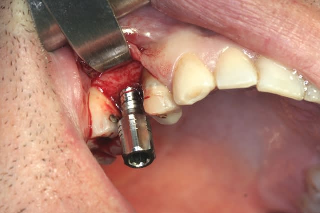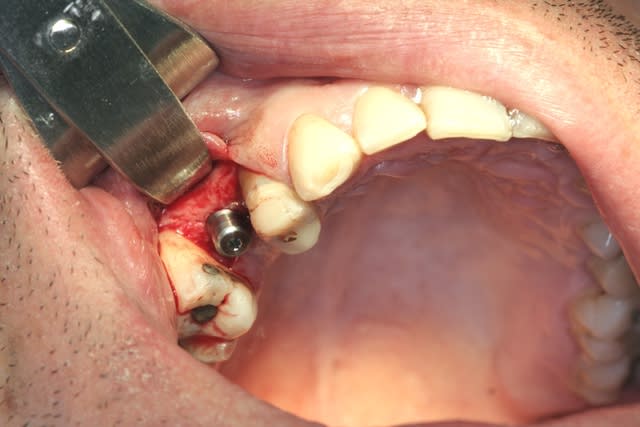 j'ai juste "léché" la préparation du site final avec le foret terminal du système...sur 8mm...avant d'insérer l'implant...stab primaire au top...blocage à 40 Ncm...