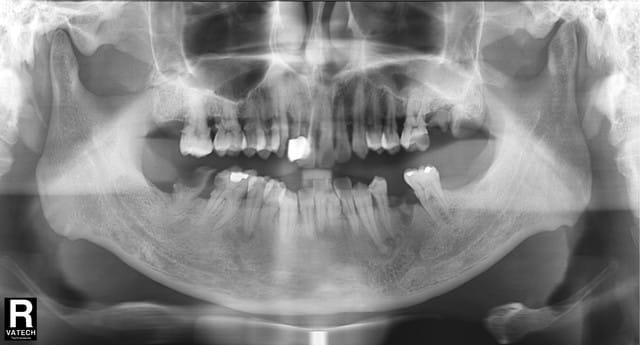 par contre, ton patient, il a une sacrée mâchoire, à voir la taille des dents et la hauteur osseuse en dessous !