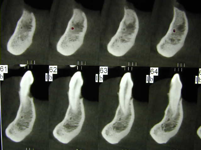 > 2)Sur le scanner j'ai l'image du nerf dentaire et d'un nerf en dessous, de quoi s'agit-il ?