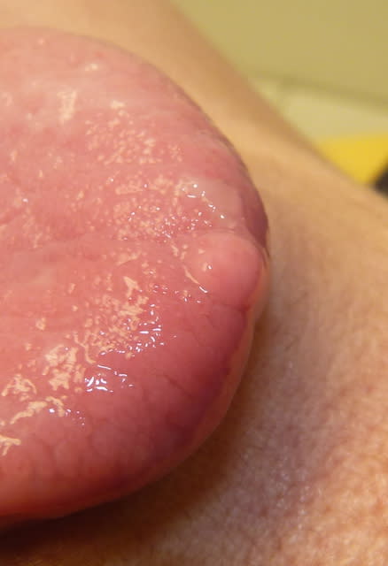 Quand je l'ai vu la seconde fois, j'ai été très étonné par ces lésions : sans le vouloir, j'ai inquiété la patiente (déjà en cours de chimio) en faisant palpation, inspection, photo. Je n'avais aucune idée de ce que ce pouvait être : mais ça me faisait penser à un épaississement épithélial étrange.