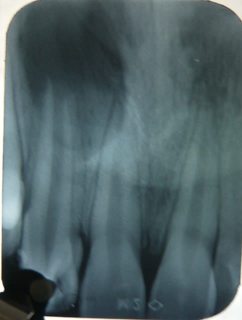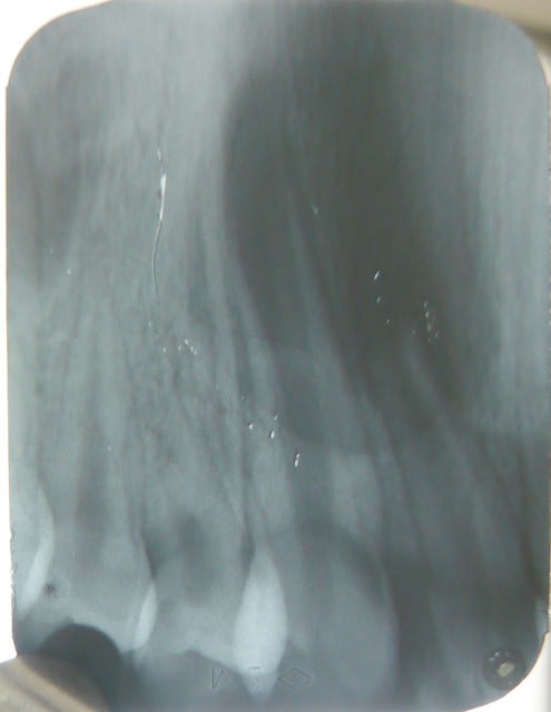 Enfant revu ce matin. Nouvelles radios rétroalvéolaires. Image apicale certaine (kyste) donc ça se complique et je vais l'adresser à un service de stomatologie...