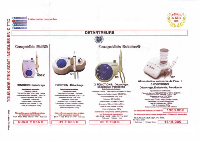 En plus , c'est pas parceque c'est Ebay que c'est chinois, j'ai dernièrement acheté, des injecteurs, des Spencers, matos de digue, chez un ricain! et à 30%de nos prix catalogues habituels. Dommage que pour le gros matos, la douane pose plus de problèmes et encore, j'ignore jusqu'à quel point. Exemple eclairage de chir Dr MACH 3df 1500$ chez PARAGON, 7000€ chez IPP Pharma. Finalement, par crainte et ignorance des frais de douane, je l'ai acheté en Belgique (CEE) pour 4200€. On trouve des trucs bien au Danemark (rotatif), en Espagne (petit matériel) et en France aussi (DBI Insert compatible EMS, SATELEC, et autre SIRONA au moins moitié prix, pour la même longévité).