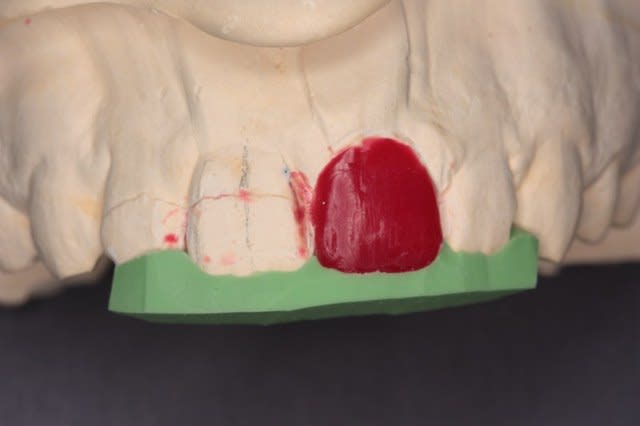 1- La qualité du WAX-UP n'est pas du tout satisfaisante si il était fait par ton technicien. Surtout coté palatin, gratter la cire pour qu'elle soit mieux polie facilitera pas mal le polissage. Reproduire un bord incisal,identique a la dent adjacente n'est pas vraiment difficile.En sachant que ce qui nous intéresse sont seulement ces deux paramètres ( coté palatin et bord incisal)