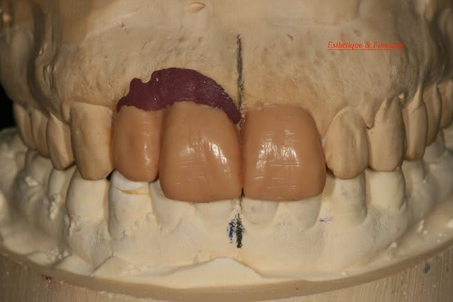tu devrais faire faire par ton prothésiste un wax avec les dents en blanc et les tissus mous qu'il te manque en rouge afin de bien visualiser tous les tissus qu'il te manque.