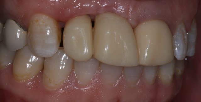 Bon ben j'ai implanté avant d'avoir refait la 21. Du coup j'ai mésialé la pose de 11 pour compenser la distalisation de 21.
