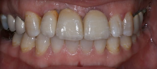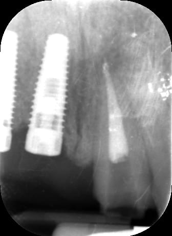 Patiente de 30 ans suite à parodontite a perdu 11-12 avec grosse perte osseuse.