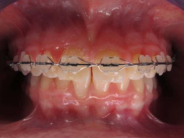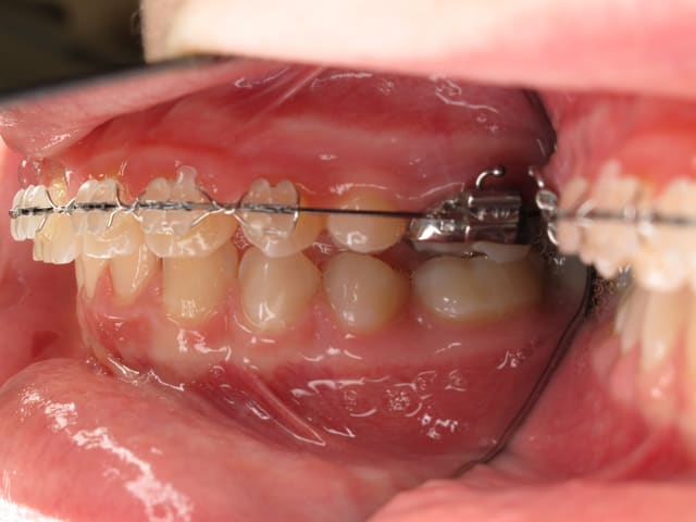 tu prends un miroir photo pour intrabuccal du coté qui évite le dédoublement et tu prends au flash, tu auras cette impression.