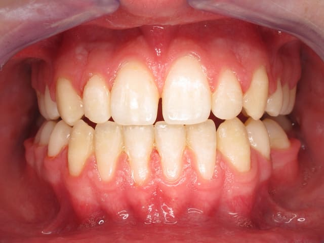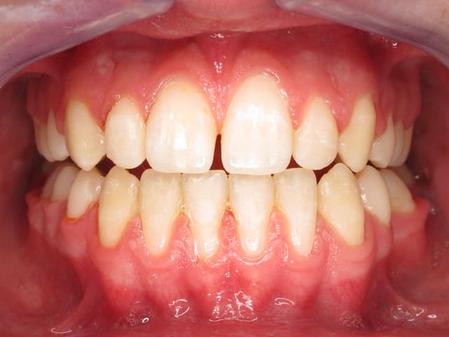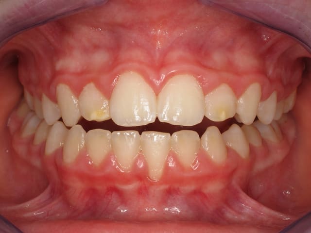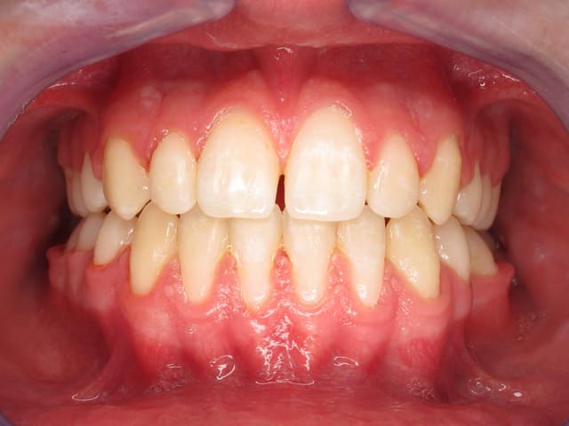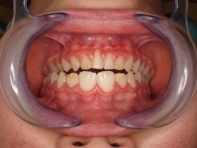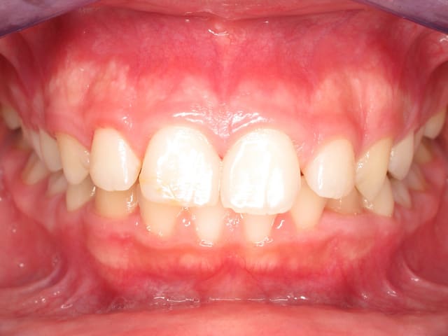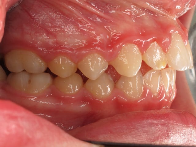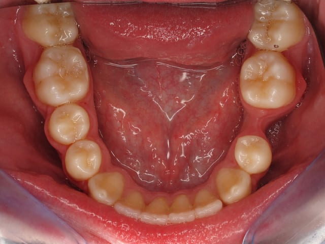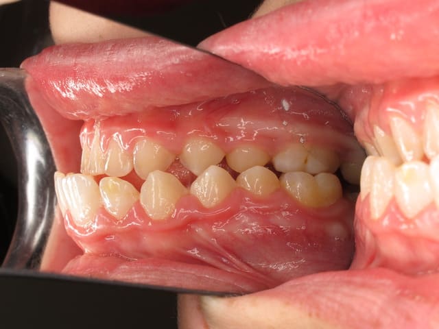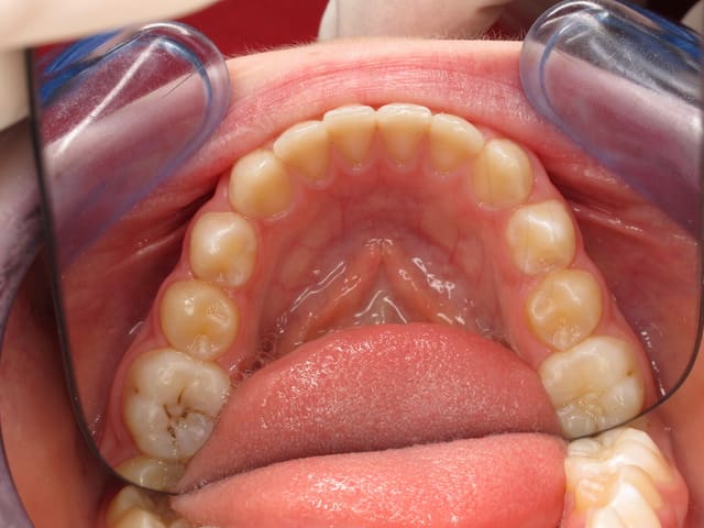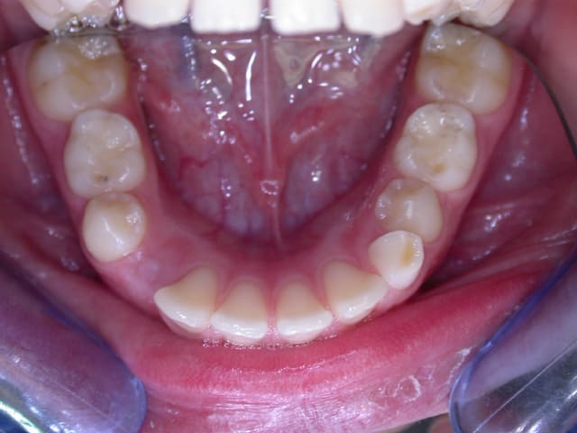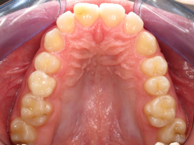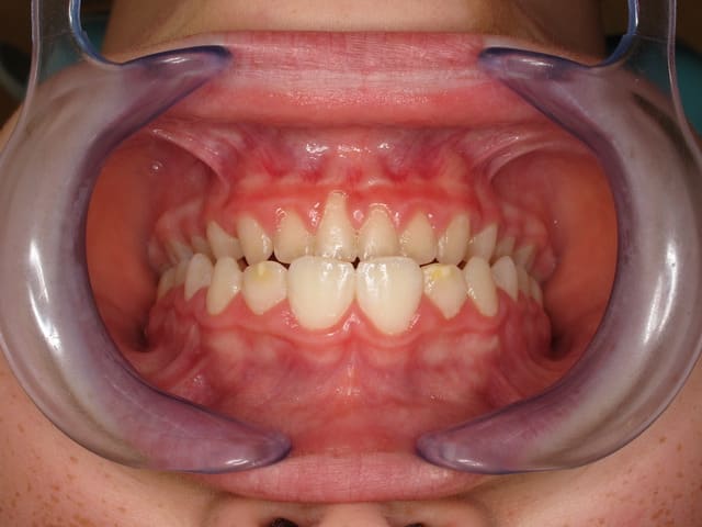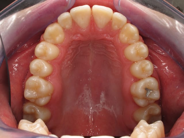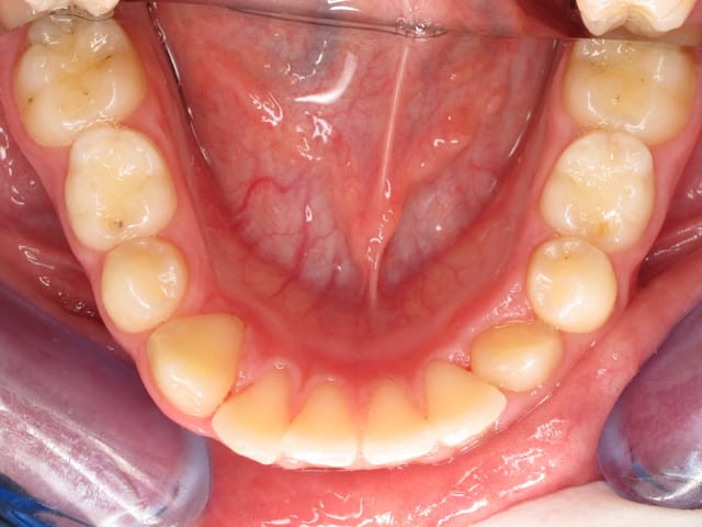 L’image doit inclure le secteur antérieur jusqu’à au moins la surface distale de la première molaire. Au mieux le cliché inclura toutes les dents. La face vestibulaire des dents ne doit pas être visible.