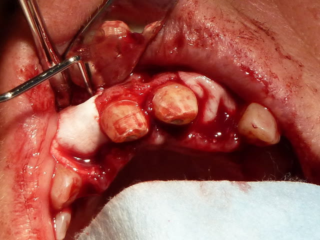 La tête du patient doit être tournée vers l’opérateur. Le miroir doit être orienté à 45 degrés par rapport à la face vestibulaire dentaire et servira à rétracter les tissus mous. Du coté opposé, un écarteur unique est utilisé.