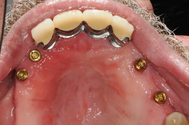 pour la petite histoire, le patient voulait seulement une stabilisation de sa prothèse amovible.