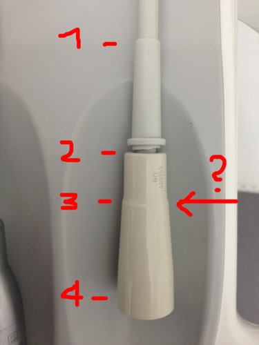 J'ai démonté deux cordons US Planmeca (le mien et celui d'un confrère) pour voir que c'est toujours au même endroit que le fil électrique est arraché de sa soudure ; c'est au niveau du raccord de la PAM ; pour ouvrir ce raccord, prendre un disque à découper (monté sur PAM) et découper au niveau du 2ème anneau en faisant attention de ne pas aller trop loin pour ne pas découper les fils et les pivots de soudure à l'intérieur.