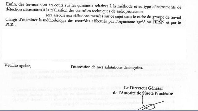 Lettre signée du directeur de l'autorité de sureté nucléaire qui dit qu'on "travaille sur le sujet"
