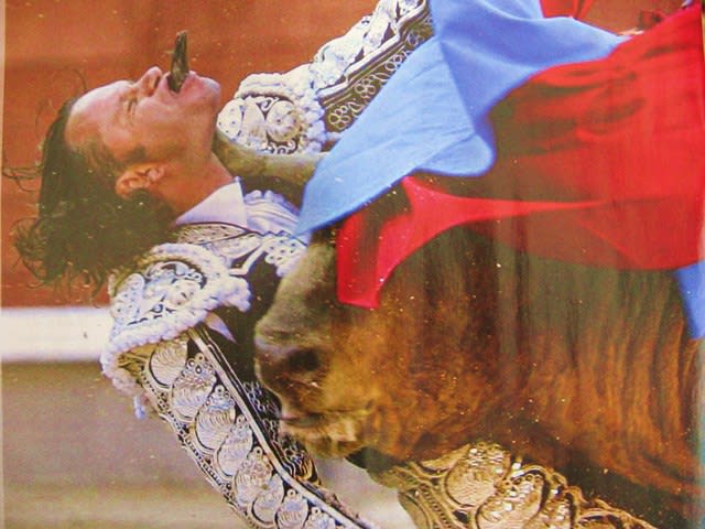 il a tenté la passe dite "du crochet de boucher" et il a perdu. (vous ne trouvez pas que le torero a un petit air de Villepin ? )