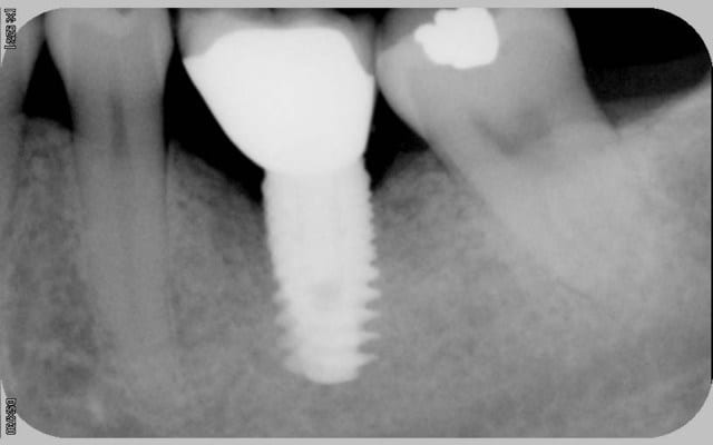 On sous estime la pression hydraulique engendrée par ce genre de vis à bois; une fois j'en mets un sur une 7 du bas et j'étais à + de 2mm du nerf: le patient, des l'implant en place se plaint de douleurs violentes, je me dis, bon je vais le dévisser un peu. Des que j'ai commencé à dévisser la vis de couverture, en fait, la douleur a disparu.