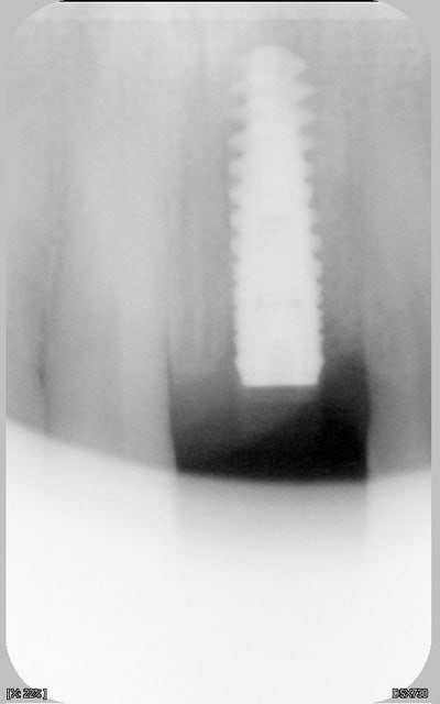 Tu remarqueras que le biseau mésial de l'implant mésial qui a été correctement enfoui n'a pas bronché.