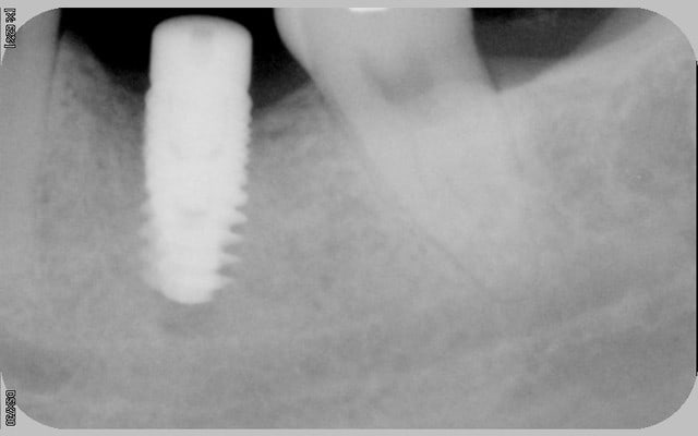 il me semble que sur le 1° cas présenté,la partie biseautée de l'implant est enfouie et que la cratérisation est nulle, idem pour l'implant mésial du dernier cas.