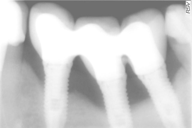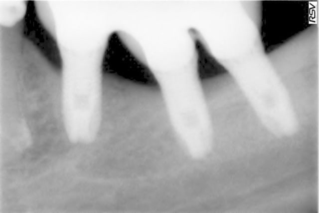 > l'implant distal était insuffisant, résultat a 6 mois cratérisation mésial et