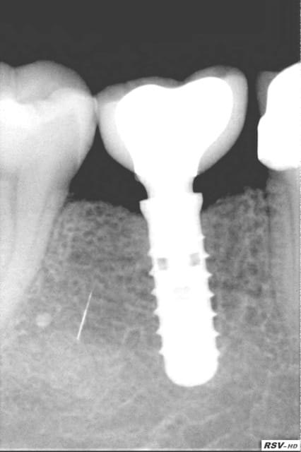 vu aujourd'hui lors de la mise en place vis de cicat petite operculisation de la vis de couv en palatin (discrète mais existante) donc ouverture nettoyage et mise en place de la vis de cicat .