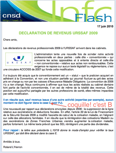> voici l'infoflash CNSD (j'ai corrigé la coquille)