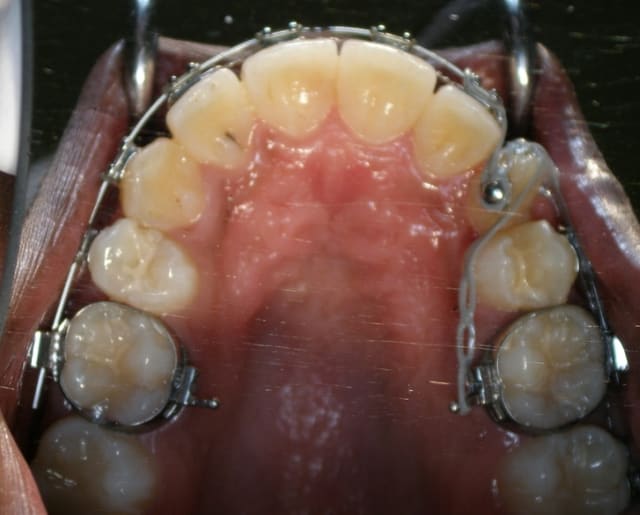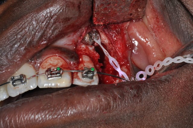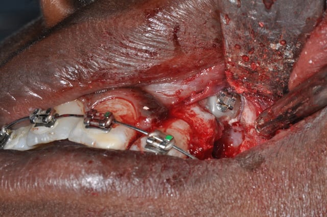 Comme tu le dis bien, la méthode avec chaînette telle que tu l’exposes n’est utilisable que lorsque la canine est très proche. Lorsque qu’elle est loin et que le placement d’une vis dans le septum n’est pas possible, que fais-tu ?