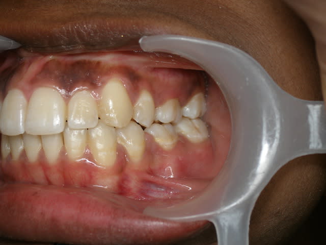 faisant pas mal de chir ortho (copains dans le métier), nous on a arrêté le métal en sous gingival: cicat fibreuse et c'est plus souvent le bracket qui fait éruption que la dent en labourant bien la gencive au passage.
