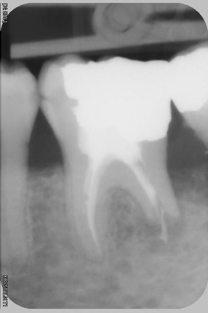Maintenant que faire avec la 36 qui est pour le moment asymptomatique...reprise ou pas reprise de traitement? Si reprise, quelle(s) solution(s) pour la racine distale?