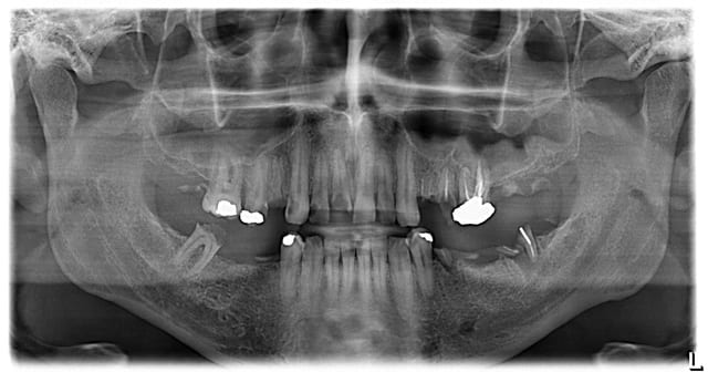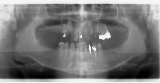 Et je suis presque certain que ce patient est arrivé en disant : "bonjour Dr, il me manque une dent de devant, ce n'est pas joli, est-ce que vous pouvez me faire une dent sur pivot ??"