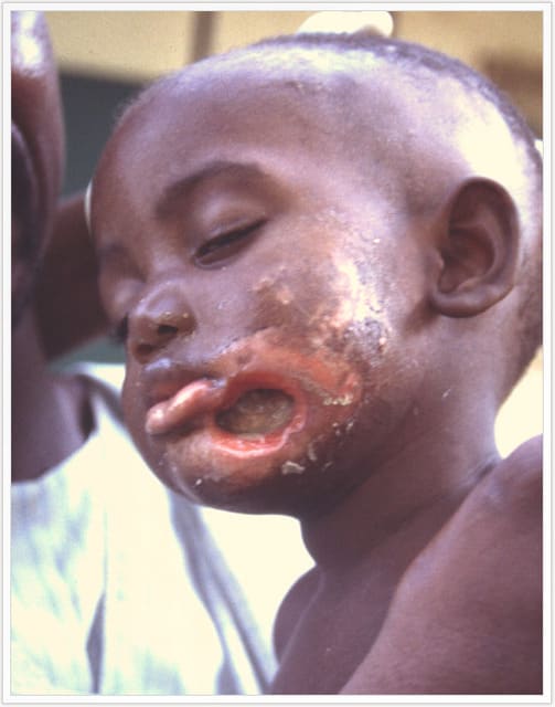 ici pour jouer il ne faut montrer que de vrai cas clinique de dedans ton vrai cabinet. sinon il suffit d'aller sur internet et d'y chercher à la rubrique des petites horreurs comme ici un noma.