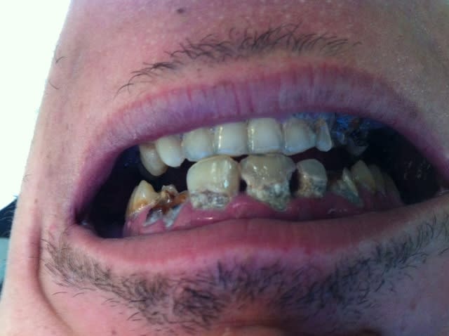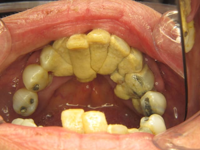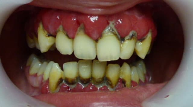Souvent ils se laissent entraîner: ça n'a jamais été très propre, un jour il y a un peu de gingivite, ça saigne, ça fait mal. Le brossage qui n'avait jamais été performant devient complètement inefficace, par crainte de se faire mal et de faire saigner. Ce genre de situation s'installe assez vite et conduit à des situations épouvantables.